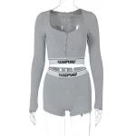 | nameOriginal | shemoda single-breasted midriff-baring lettered long-sleeved top |