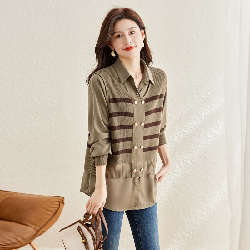 | nameOriginal | Shirt fake two piece loose knitted wool spring and autumn clothing |