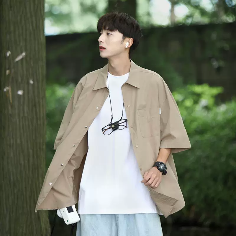 Shirt men's short-sleeved summer thin casual loose t-shirt jacket Japanese trendy summer pure cotton work shirt