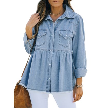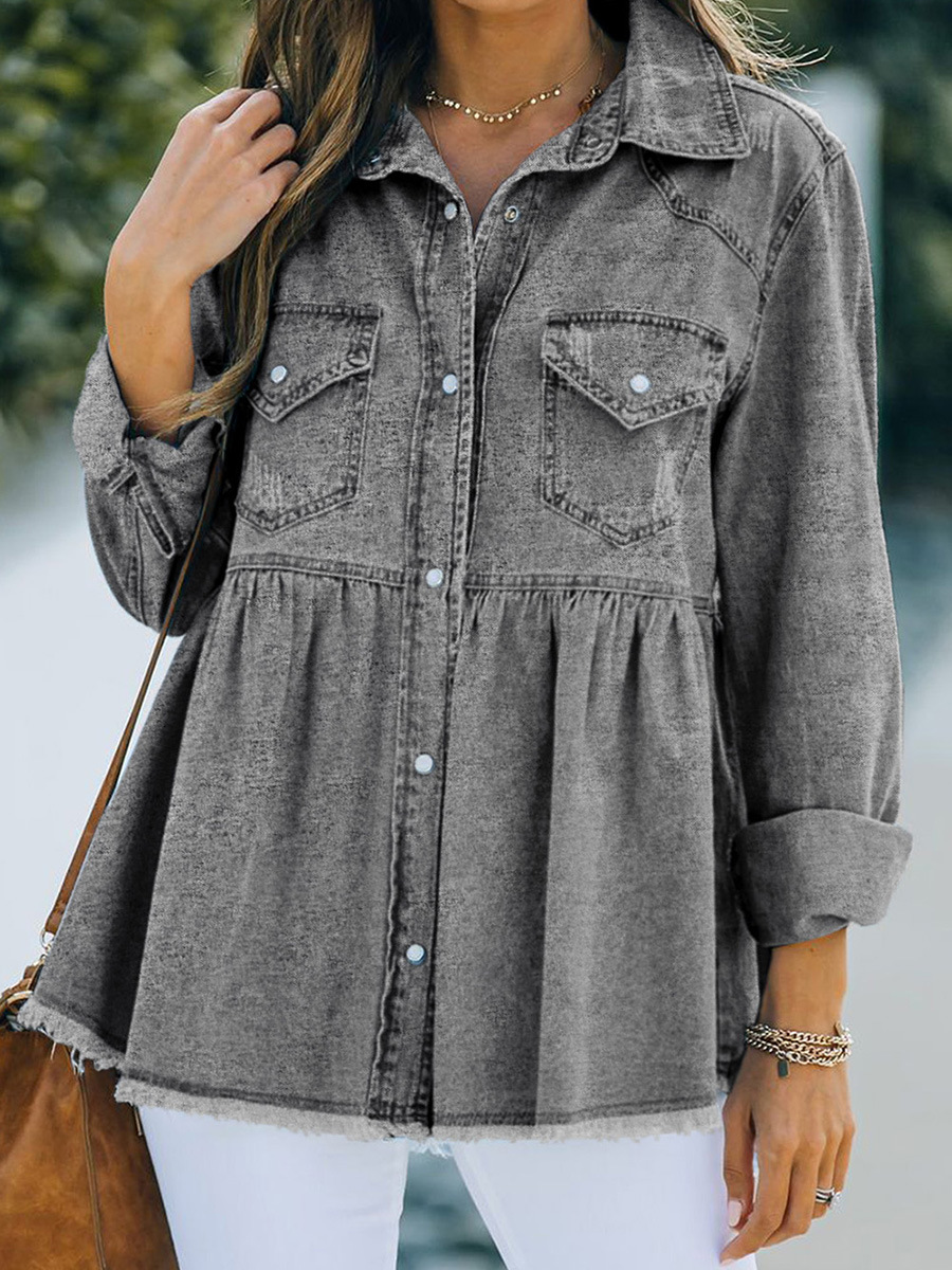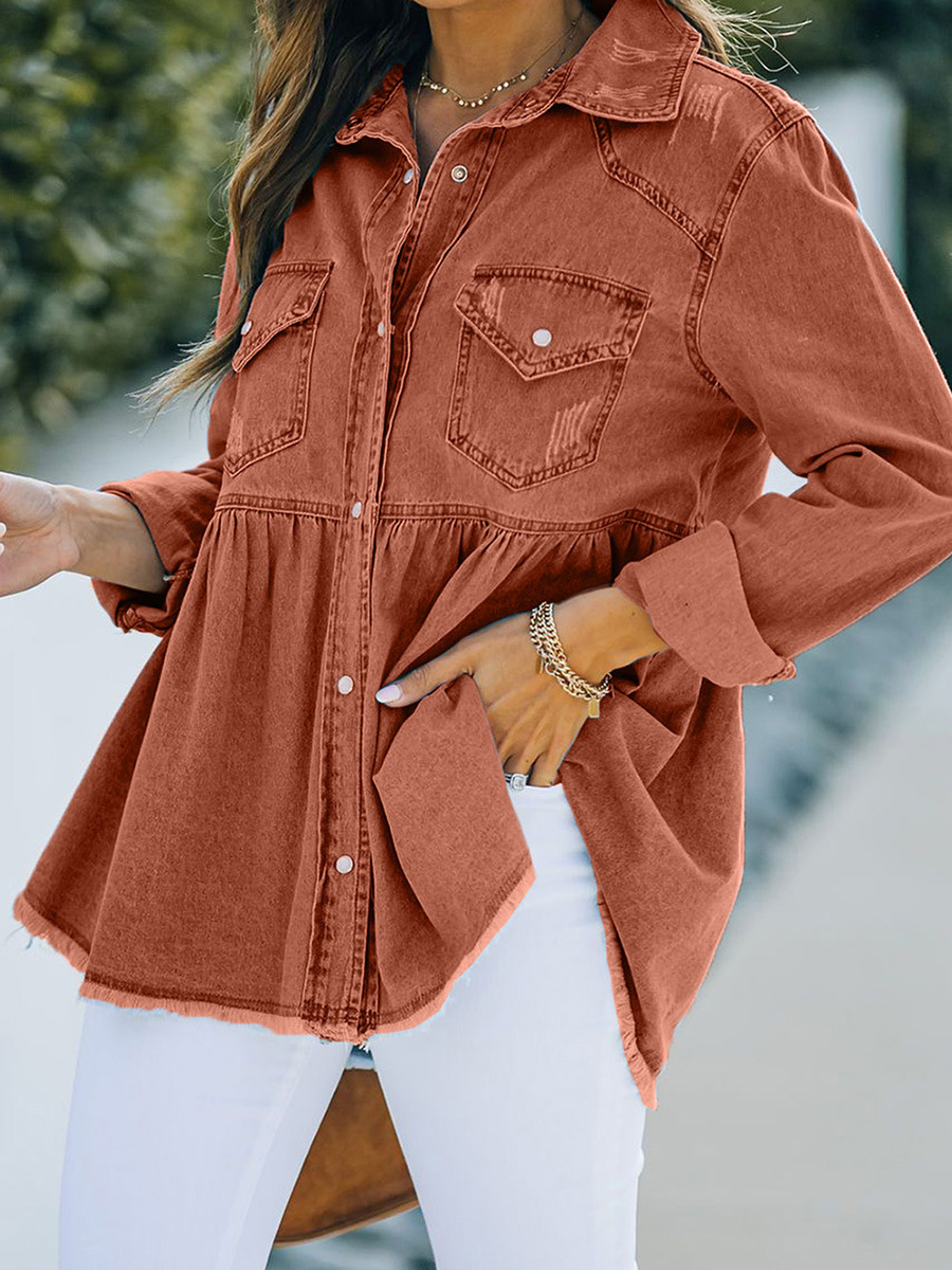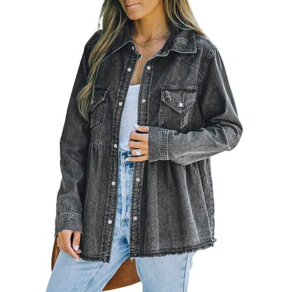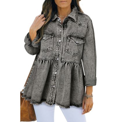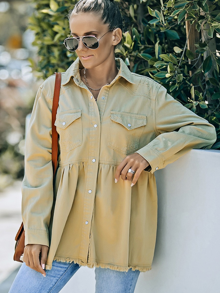 | nameOriginal | Shiying jacket for women 2024 new autumn European and American solid color distressed European and American Denim long sleeve coat 7821005 |