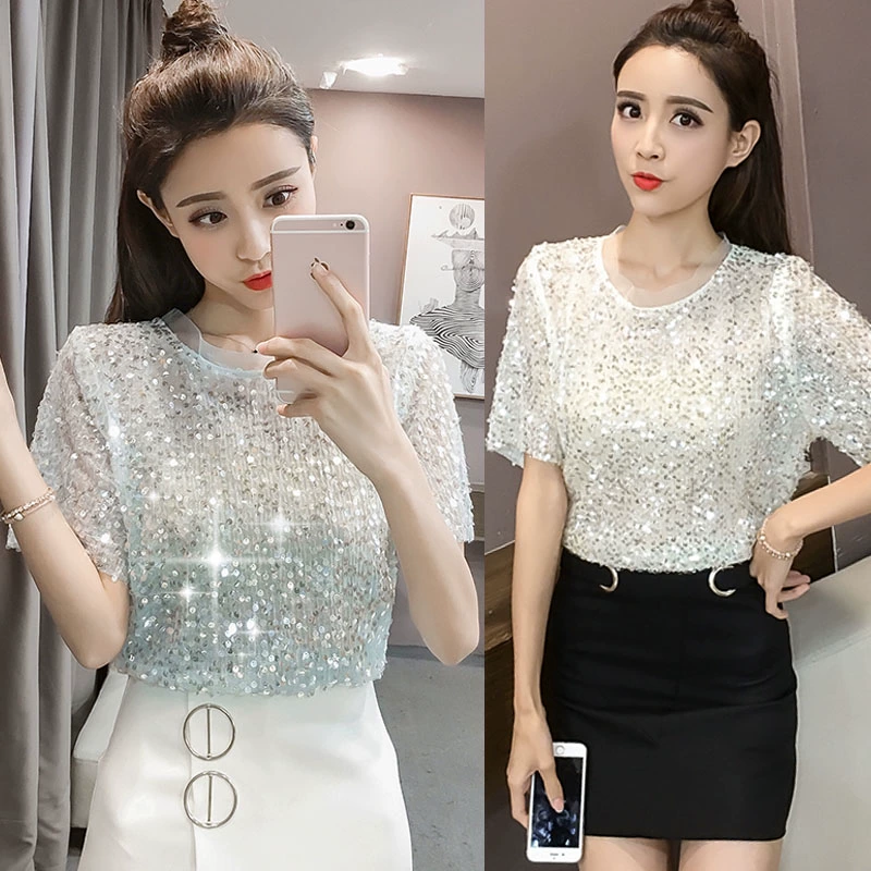 Shopping and dancing round neck short sleeve loose bling summer dress
