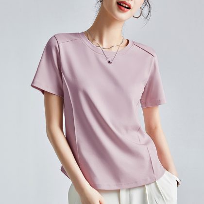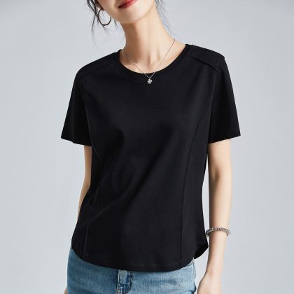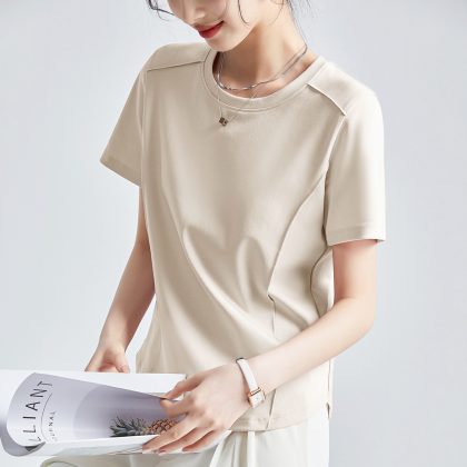 | nameOriginal | Shopping Mall Same Style Liquid Ammonia White Short-Sleeved Shoulder T-Shirt Women's 24 Spring and Summer mercerized Cotton Round Neck Base Shirt T-Shirt Half Sleeve |