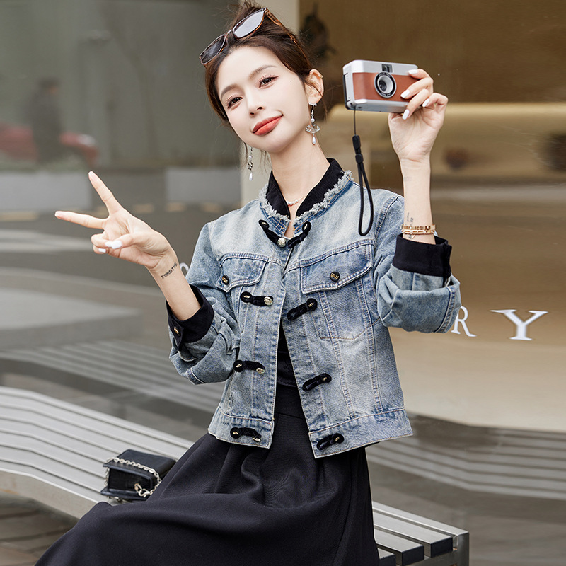| nameOriginal | Short Denim Jacket Women's Spring and Autumn Vintage Buckle Top 2024 New Stitching Design Guofeng Jacket |