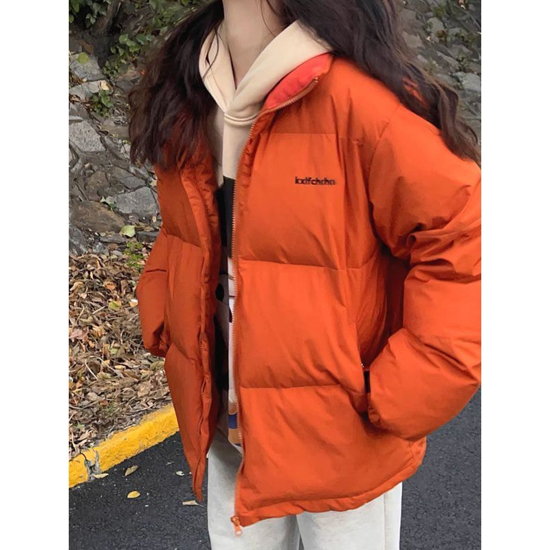 Short down jacket women's winter Korean fashion brand 2023 New loose couple thick stand collar bread coat men Orange