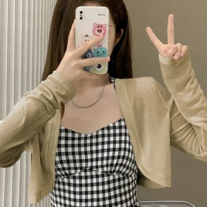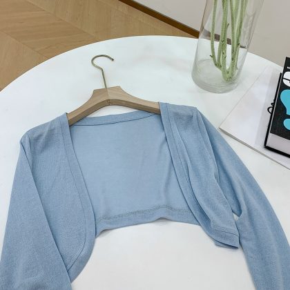| nameOriginal | Short Ice Silk Sun Protection Cardigan Women's Summer Thin Shaped Knitted Top with Sling and Shawl French Style Waistle Blouse  |