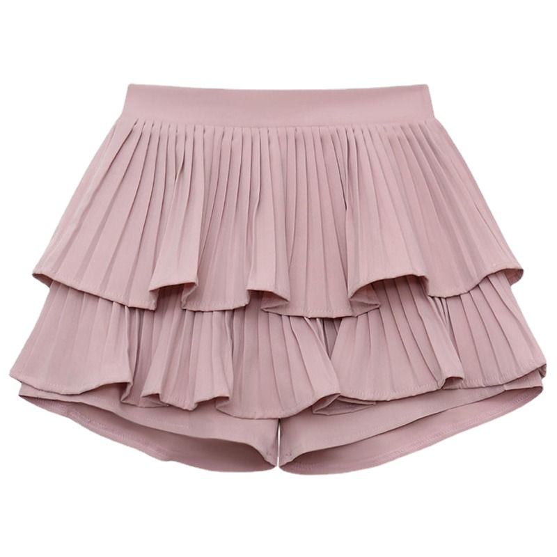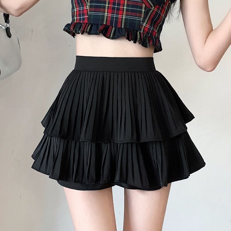 | nameOriginal | Short skirt women's 2024 new spring and autumn high waist A- line slimming white pleated double layer cake skirt half-length skirt |