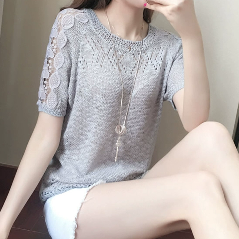 | nameOriginal | Short-sleeved 2024 new summer style beautiful right shoulder T-shirt design niche ice silk loose knitted top for women |