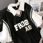 | nameOriginal | Short-sleeved college style polo shirt with fake two-piece design |