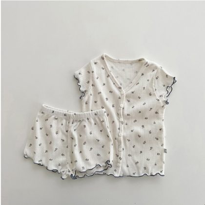 | nameOriginal | Short-sleeved Ear Skin-friendly and Soft Baby Shorts Mid-suit Flower and Wood Home Clothes Small Shattered Summer Korean Style for Children |