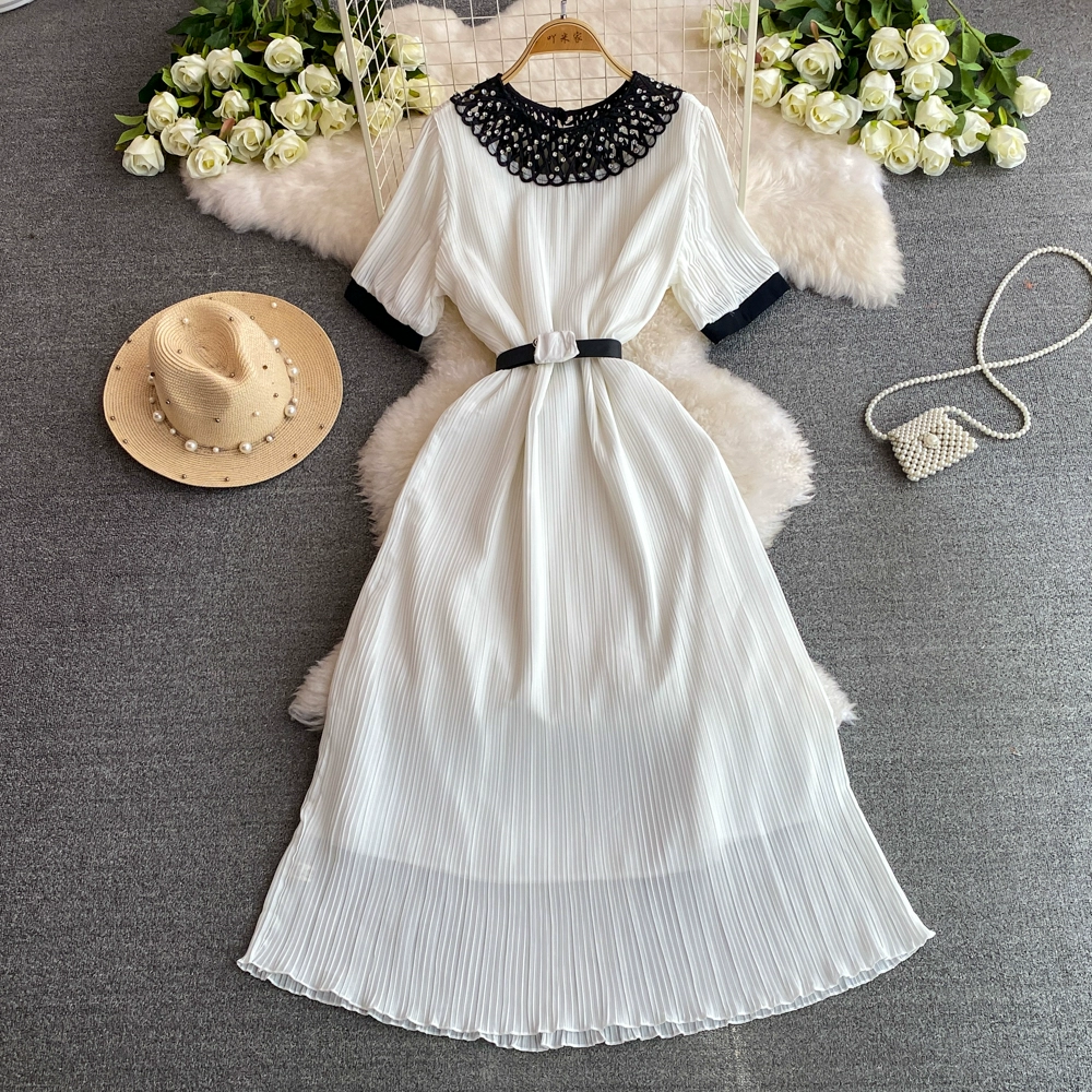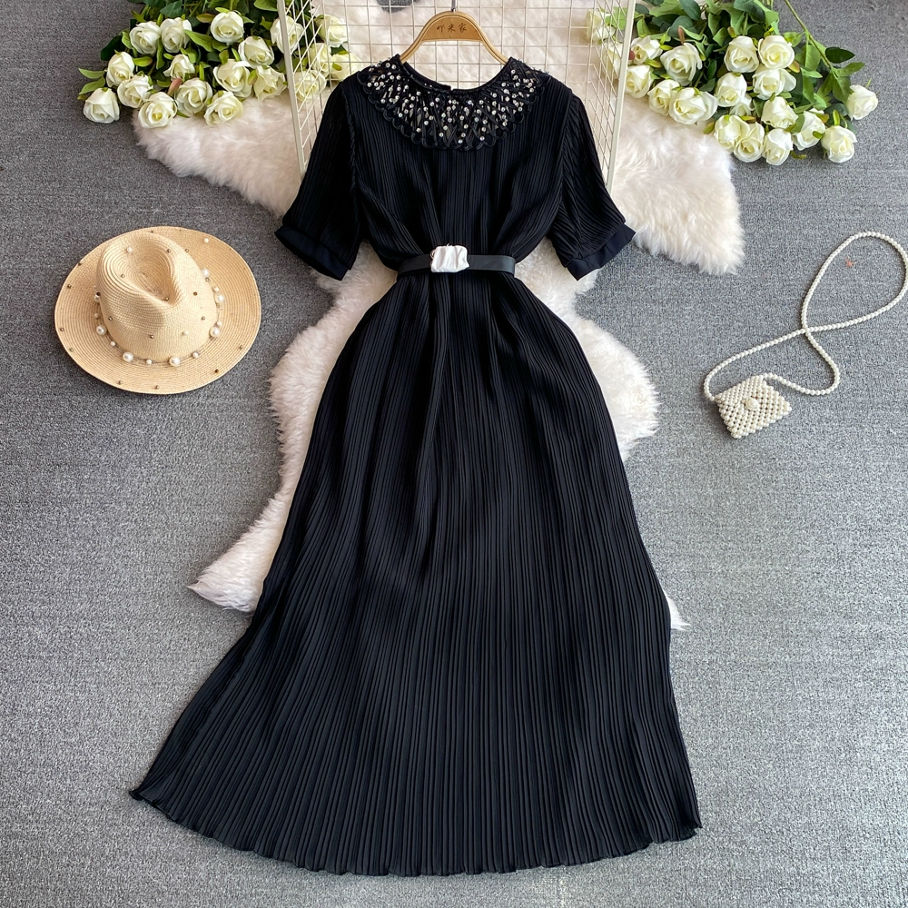 | nameOriginal | Short-sleeved high-end dress 2024 summer hot style elegant lady loose waist slimming mid-length a-line skirt |