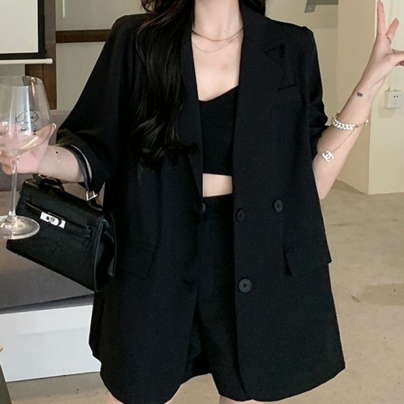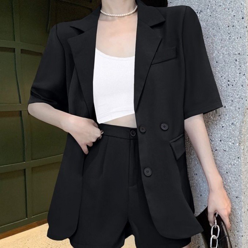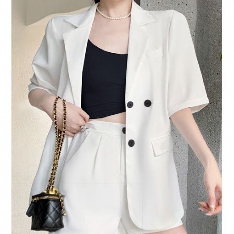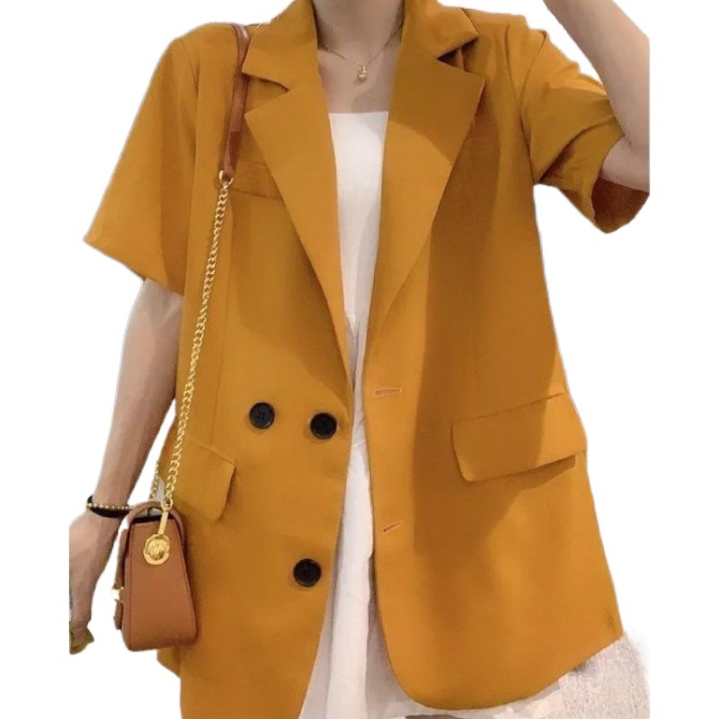 سترة بدلة صغيرة بأكمام قصيرة للنساء لصيف 2024 تصميم فضفاض غير رسمي جديد بدلة رفيعة