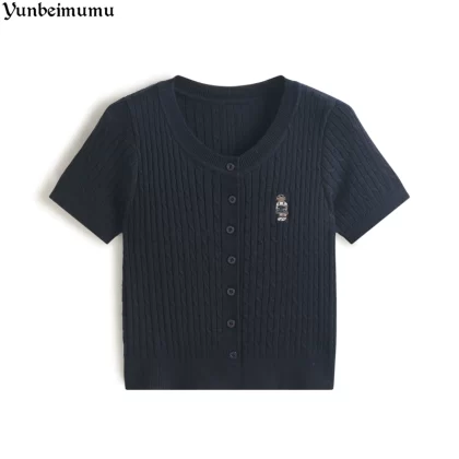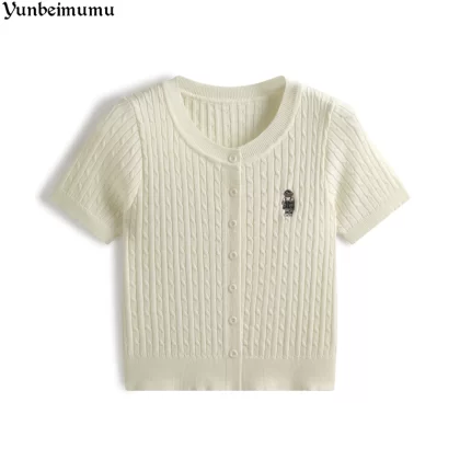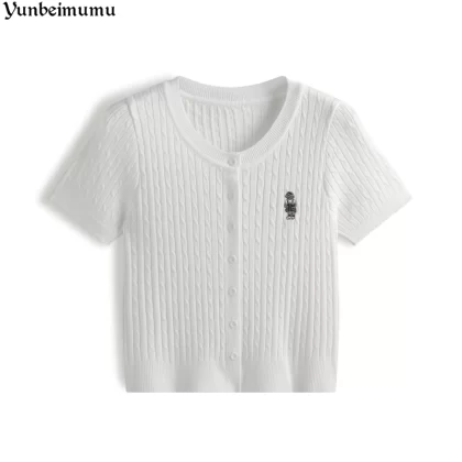بلوزة صيفية بأكمام قصيرة ورقبة دائرية وقصة ضيقة مع تطريز رفيع