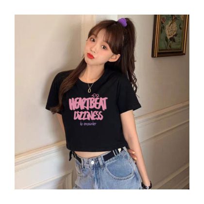 | nameOriginal | Short-sleeved T-shirt Women's Black Short Shoulder Summer Top New Sweet and Spicy Style American-style Slim-fit Navel-exposed Niche Students |
