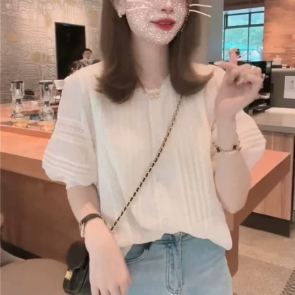 | nameOriginal | Short-sleeved thin French shirt for petites with hollow panels |