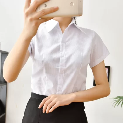 nameOriginal | Short-sleeved work clothes formal fitted pink cotton white shirt |