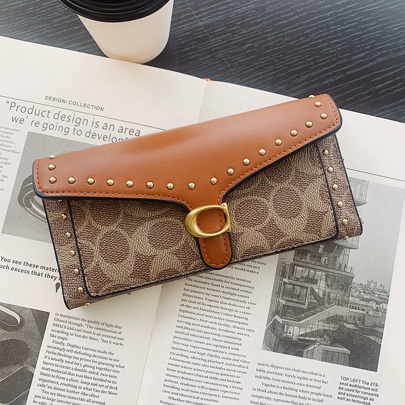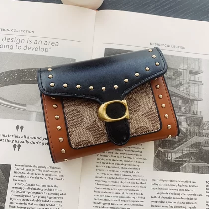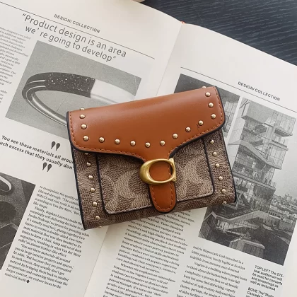 Short Wallet Women's 2023 New European and American Contrast Print Folding Multi-Card Wallet Retro Rivet Long Child-Mother Bag