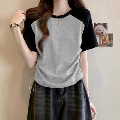 | nameOriginal | Shoulder Short-sleeved T-shirt Women's 2024 New Summer Design Niche Tight Waist Drawstring Slimming Ripped Short Top |