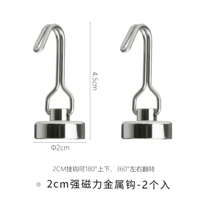 Shuangshan Powerful Magnetic Hook No-Punch Magnetic Hook Metal Hook Kitchen Range Hood Refrigerator Traceless Sticky Hook 2 Pack