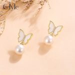 Sidel European and American Cross-border New Butterfly Earrings Bead Earrings Advanced Design Sense Fashion Personalized Silver Pin Earrings