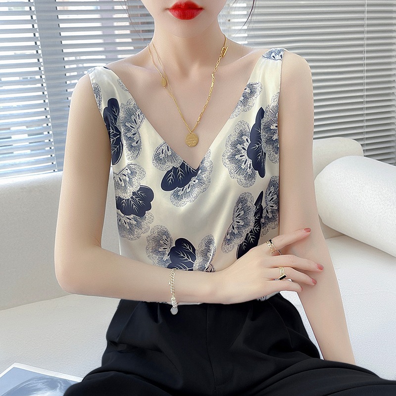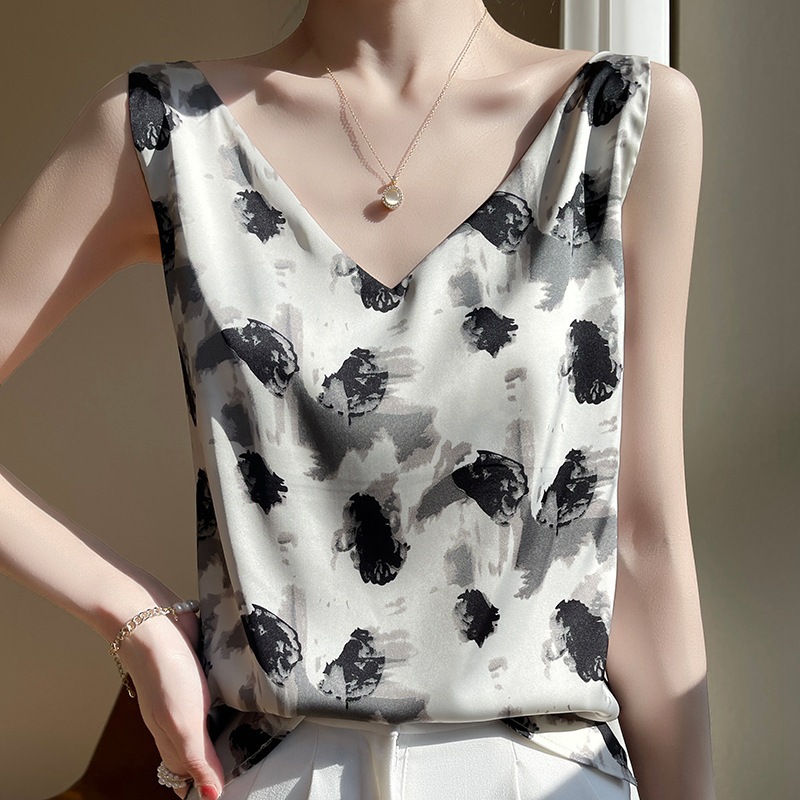| nameOriginal | Silk 2024 Women's Spring and Summer New Slim-fit V-neck Double-shoulder Printed Elegant Inner Top Camisole Vest |