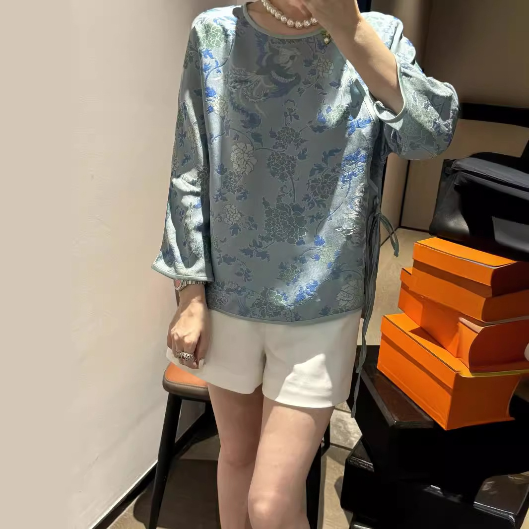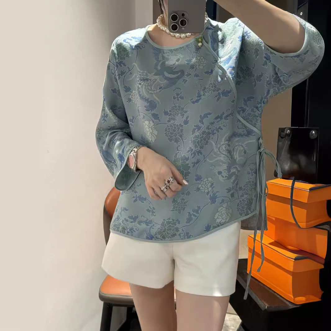 | nameOriginal | Silk Alien Rose Top New Chinese Style National Style Round Neck Slant Casual Loose Comfortable Breathable All-match Elegant T-shirt |