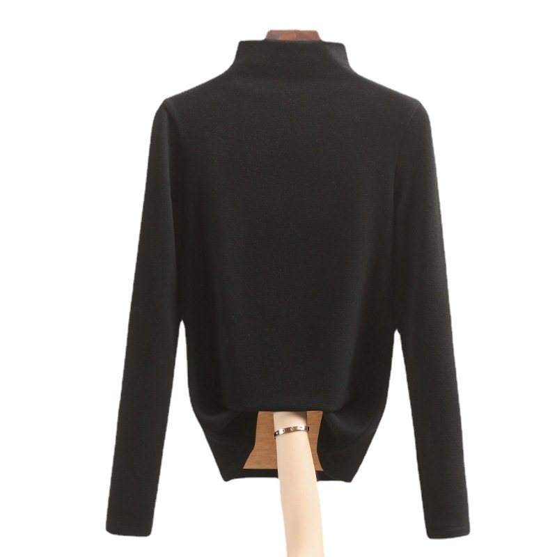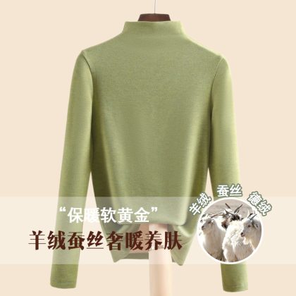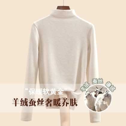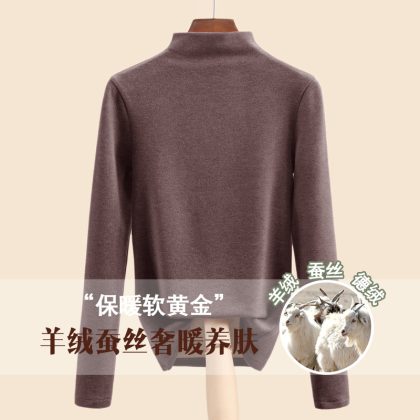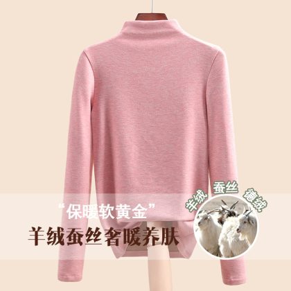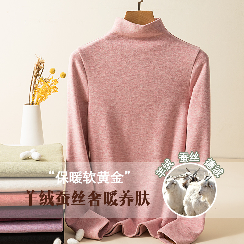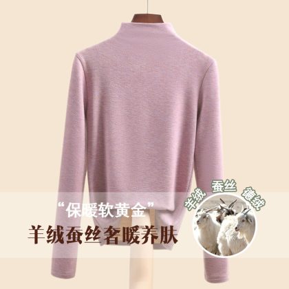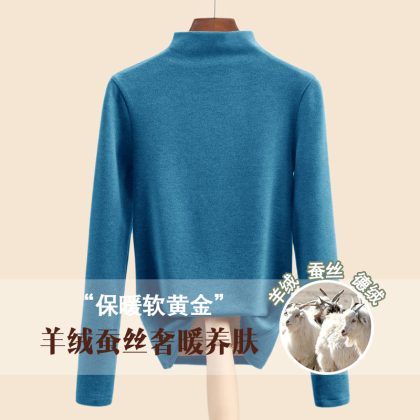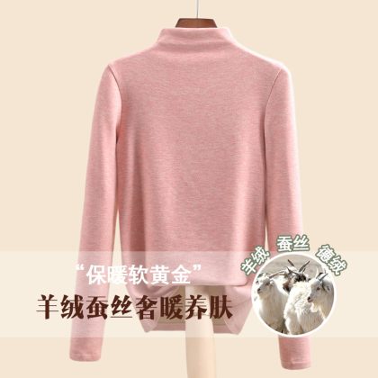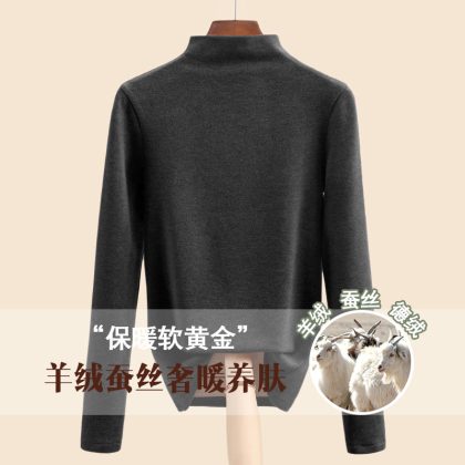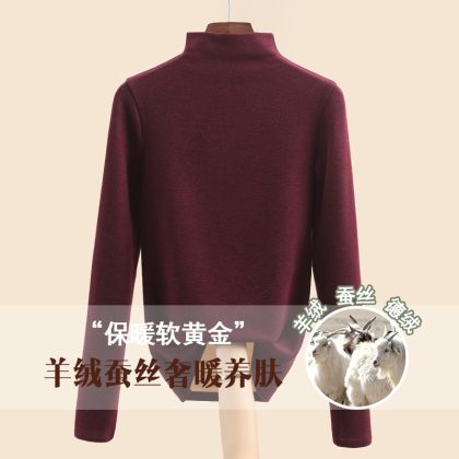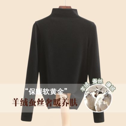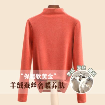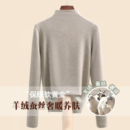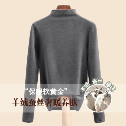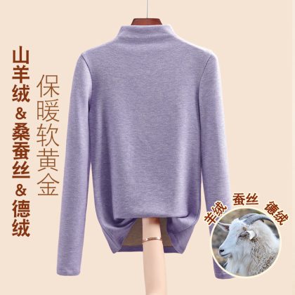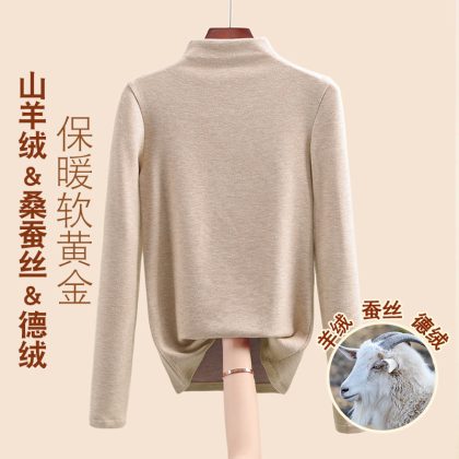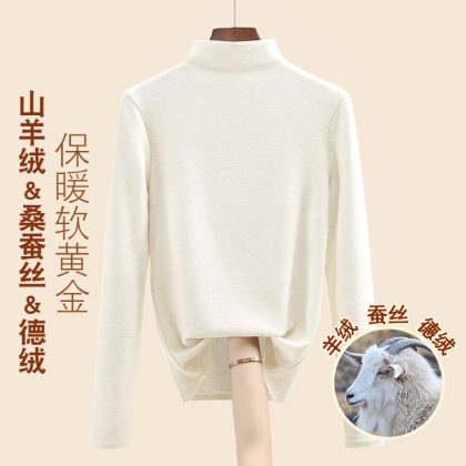 Silk cashmere de Velvet bottoming shirt women's half turtleneck 2023 new fleece-lined warm thickened spring and autumn inner western style