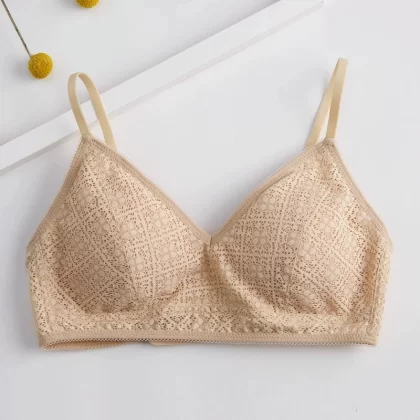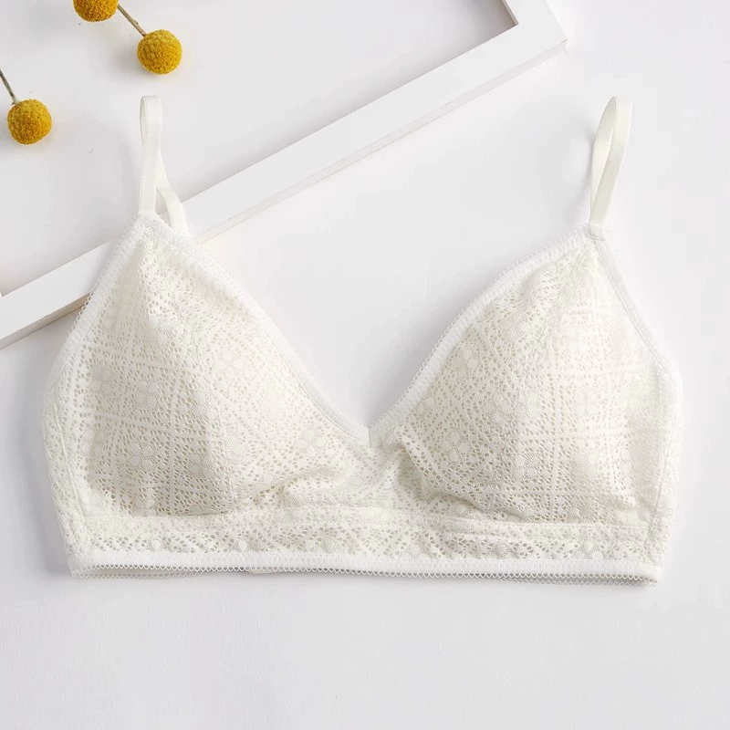 | nameOriginal | Silk French underwear women's wire-free bra ultra-thin lace small breast triangle cup mulberry silk bra |