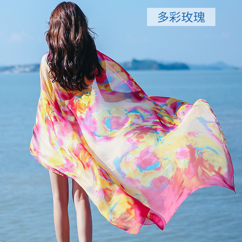 Silk Scarf Women's All-match Chiffon Scarf Oversized Sunshade Beach Scarf Summer Travel Sunscreen Simple Variety Printing Scarf