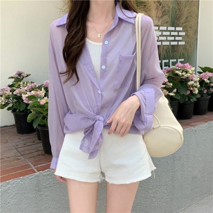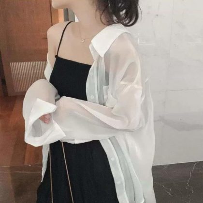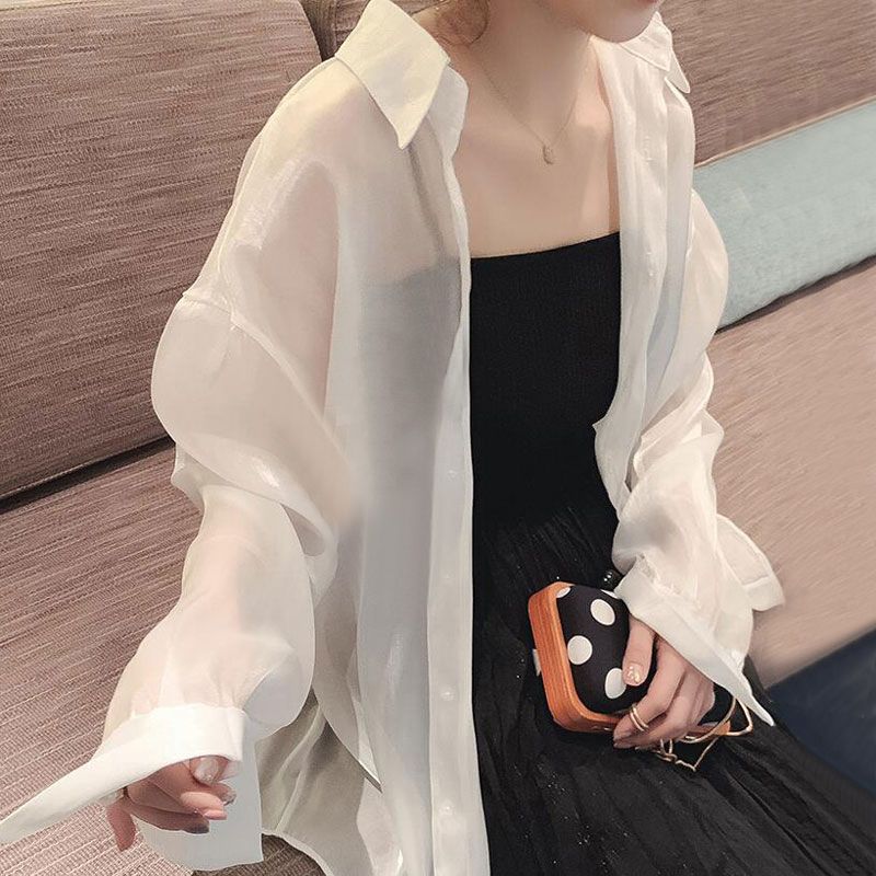 | nameOriginal | Silk shirt versatile thin sun protection clothing spring 2023 new women's cardigan loose white chiffon shirt coat |