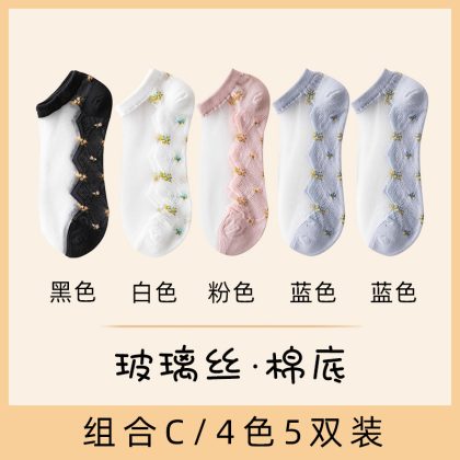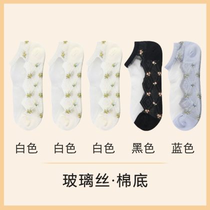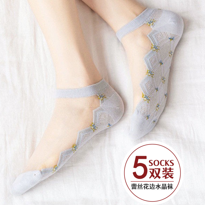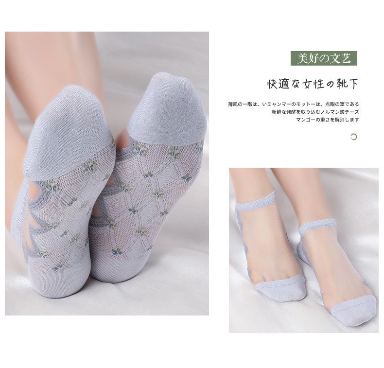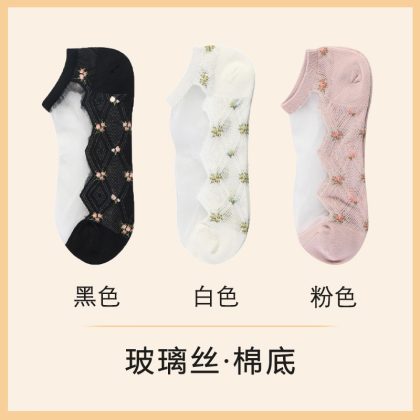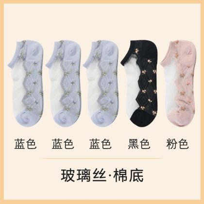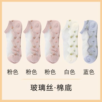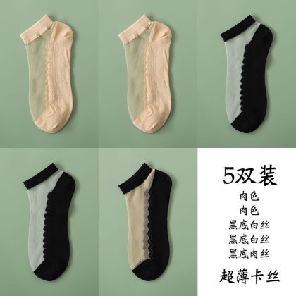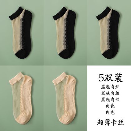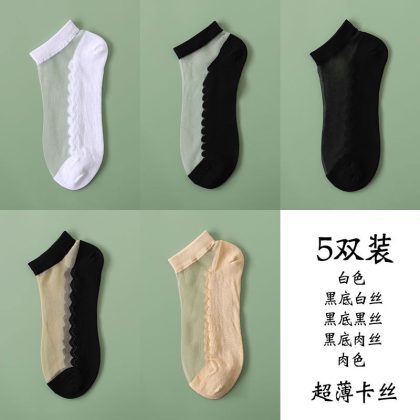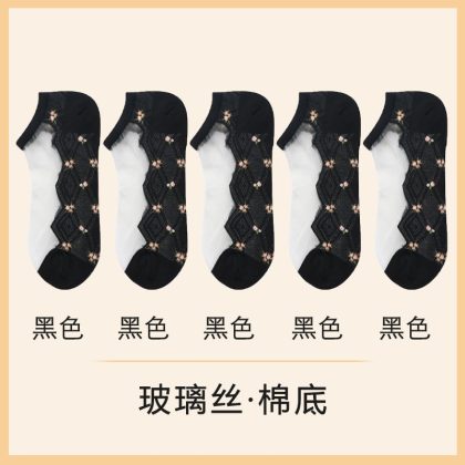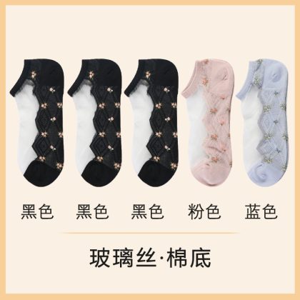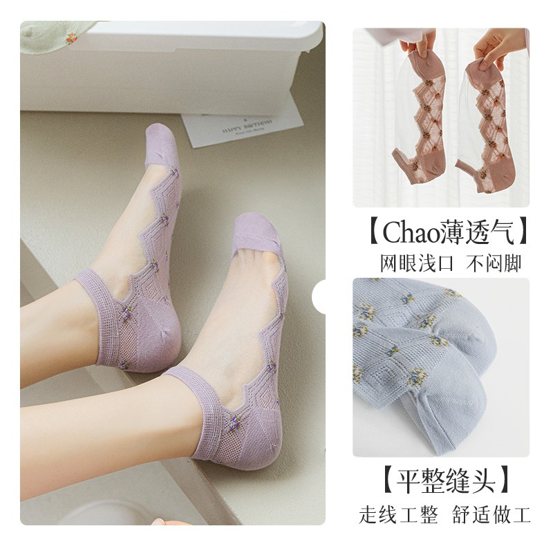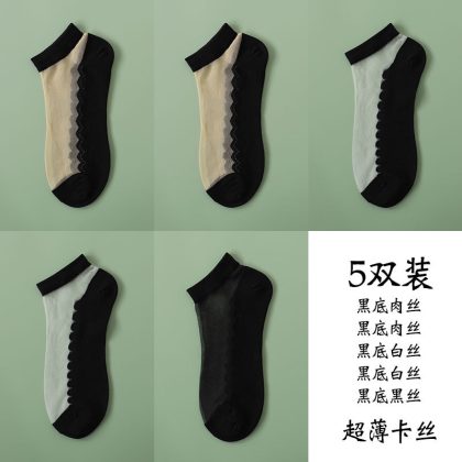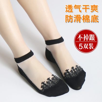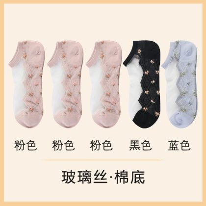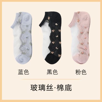 | nameOriginal | Silk Stockings Women's Spring and Summer Thin Shallow Mouth Invisible Bottom Breathable Short Socks Glass Crystal Ice Silk Low-top Boat Socks |