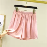 شورت حريري فضفاض عالي الخصر للتخسيس بلون الساتان