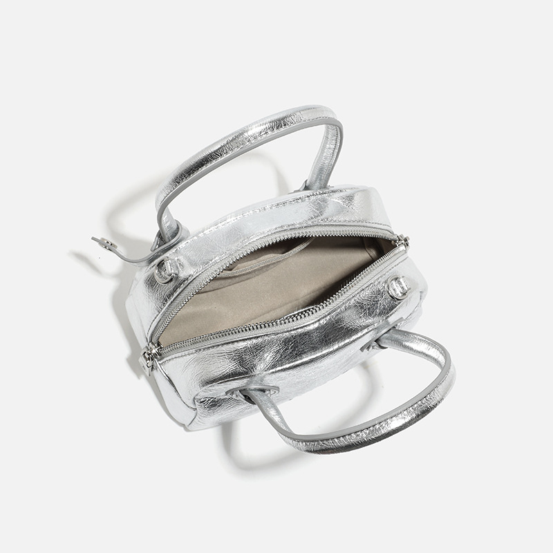silver Bag Women's 2024 New High-end Light Luxury Super Popular Portable Bowling Bag Mini Square Bag Pillow Bag