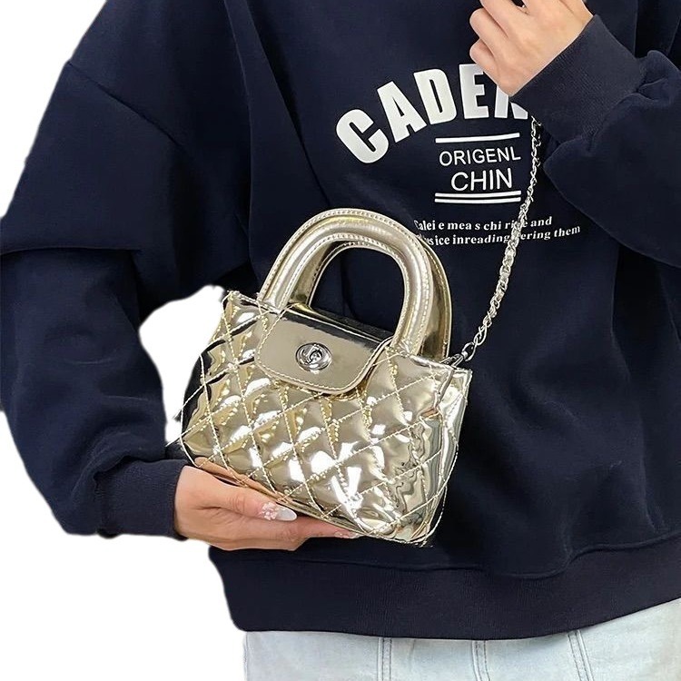 silver Lingge Chain Bag Women's 2024 New Summer Light Luxury Handbag High-end Chanel Style Crossbody Bag