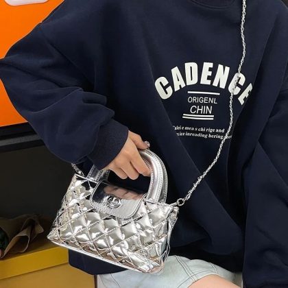 حقيبة سلسلة Lingge فضية للنساء 2024 حقيبة يد فاخرة خفيفة للصيف حقيبة كروس بنمط شانيل الراقية