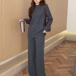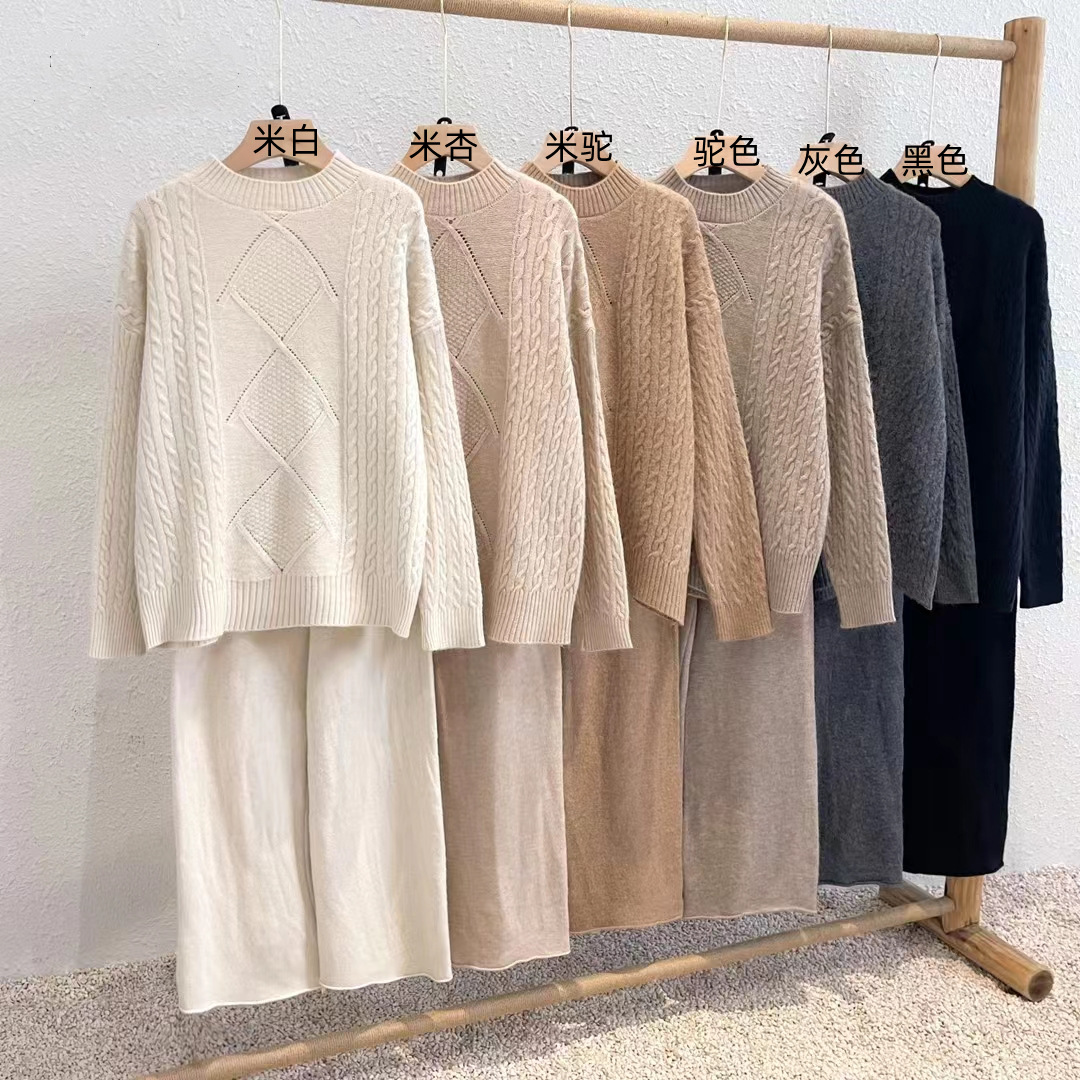 Simple autumn and winter New Fashion casual knitted suit pants women's loose sweater wide leg pants trousers two-piece suit fashion