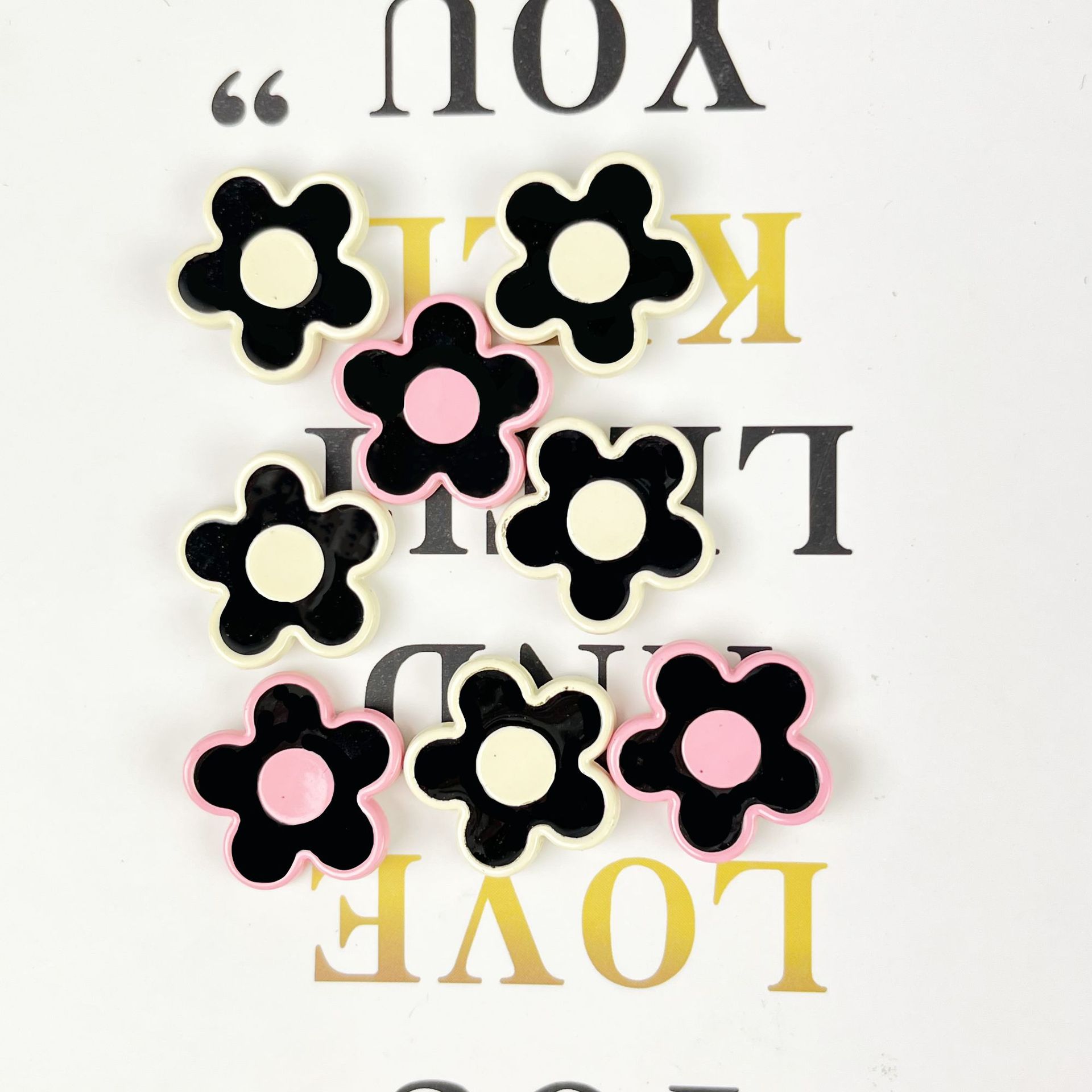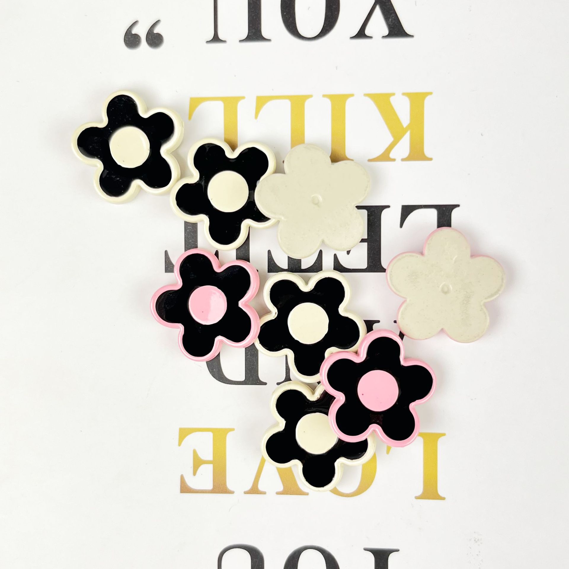 | nameOriginal | Simple Black and White Black Powder Flower Resin Patch Cream Gel Hair Accessories DIY Decorative Mobile Phone Case Hole Shoes Accessories |