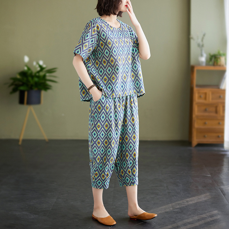 | nameOriginal | Simple cotton and linen fat mm ethnic style 2023 Summer new retro age-reducing breathable suit top + cropped pants children |