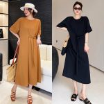 Simple design new loose-fitting knee-length short-sleeved summer dress