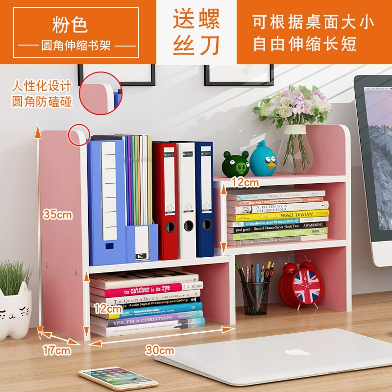 Simple desktop retractable storage bookshelf office student children's bookcase small shelf space-saving walnut
