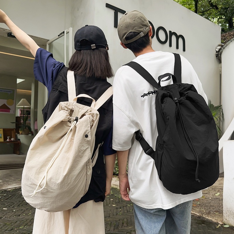 | nameOriginal | Simple Drawstring Bag Women's New Solid Color Shoulder Bag Korean Style Retro Tote Bag College Student Storage Backpack for Men |