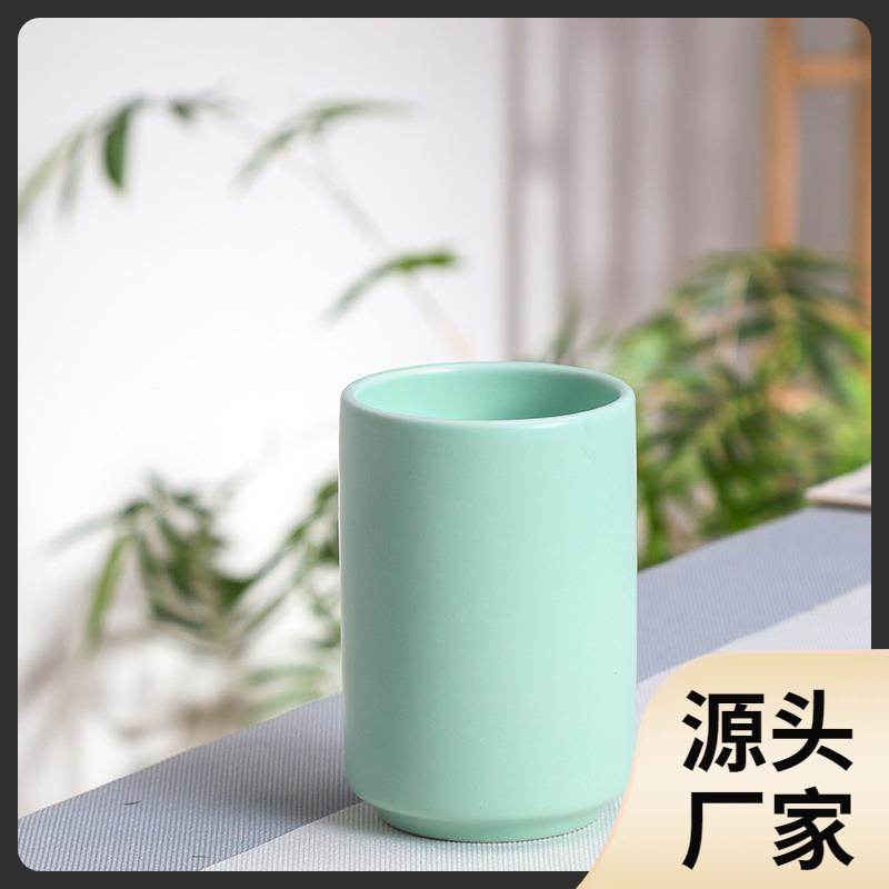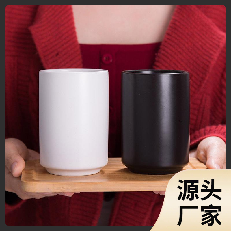 Simple Japanese Style Black and White Ceramic Straight Cup Tea Cup No Handle Hotel Toothbrush Mouthwash Cup Mug Couple Travel