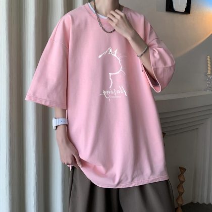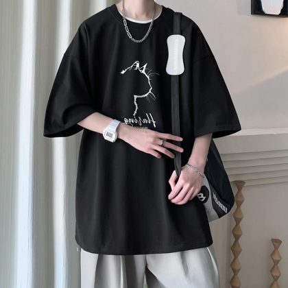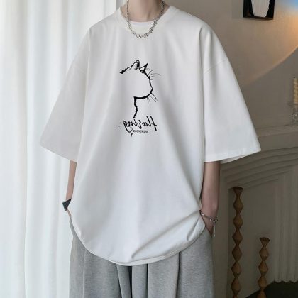 | nameOriginal | Simple Pen Cat cityboy Japanese T-shirt Short-sleeved Men's Summer Extras Large Size White Top Clothes |
