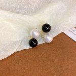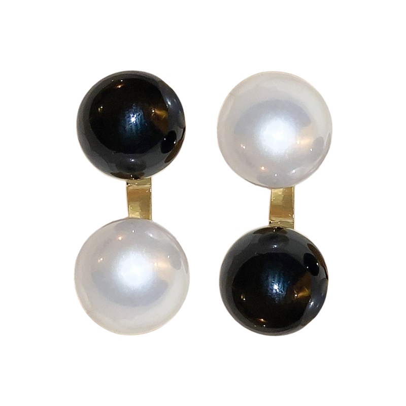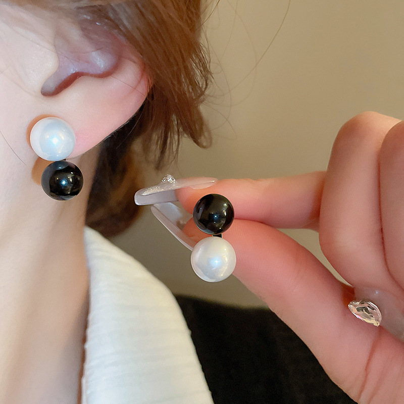 Simple retro black and white pearl geometric 925 silver needle stud earrings fashionable unique niche temperament high-grade earrings for women