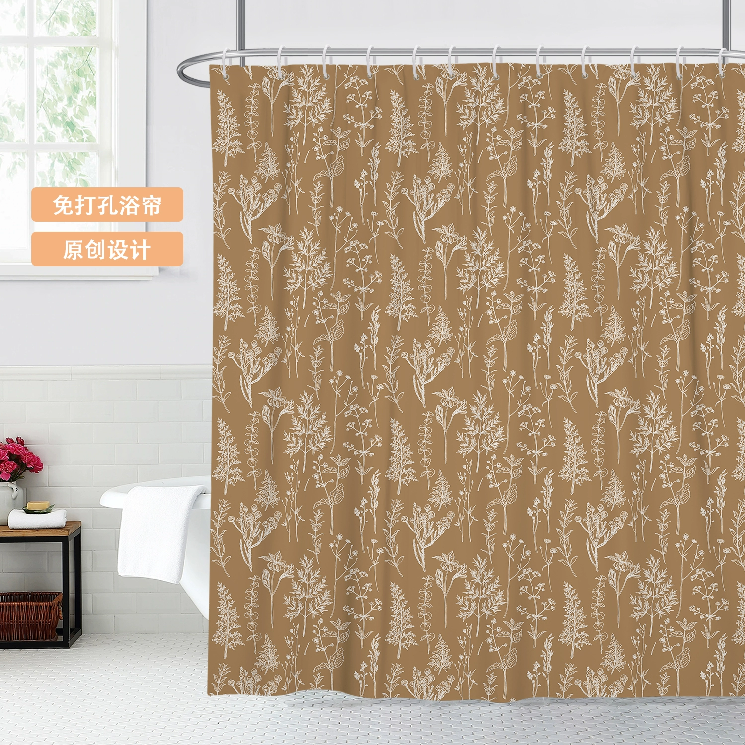 Simple retro punch-free thickened mildew-proof high-end shower curtain