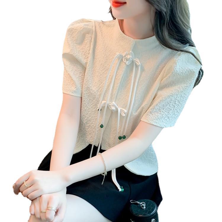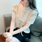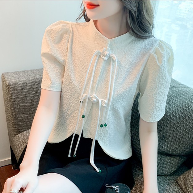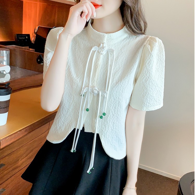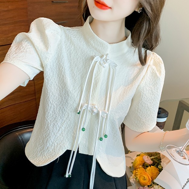 | nameOriginal | Simple Style Shirt Women's Heavy Industry Palace Style Single Row Short Buckle Tassel Top apricot White Others |