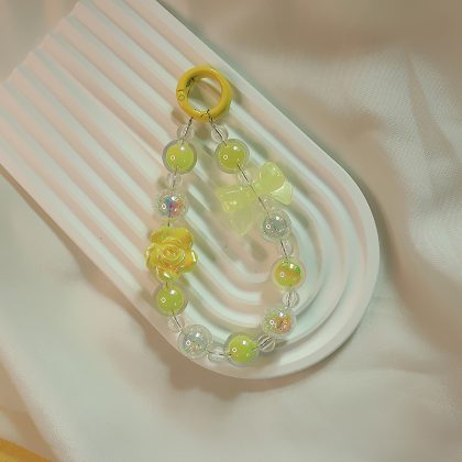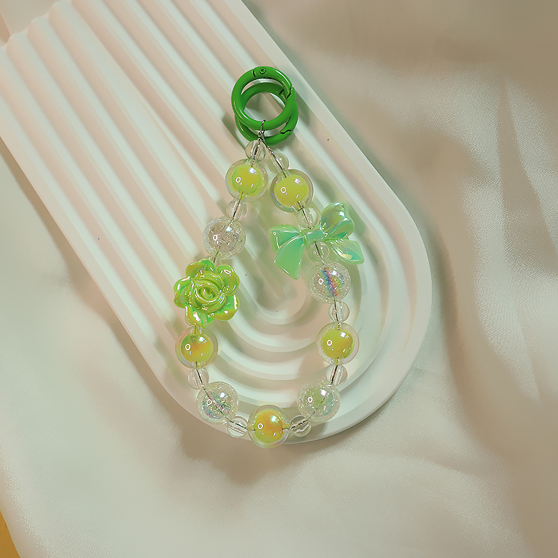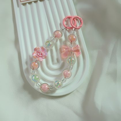 Simple Summer New Camellia Beaded Chain Fresh Bow Mobile Phone Chain Colored Beaded Bag Pendant Girlfriend
