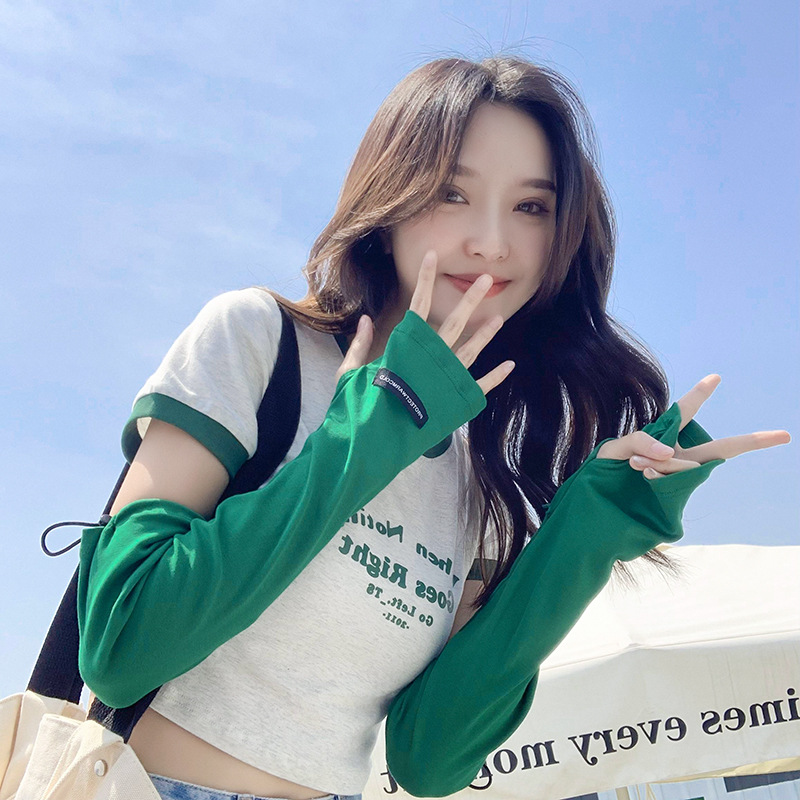 | nameOriginal | Simple summer solid color leaky finger elastic band oversleeve outdoor sun protection ice sleeve female driving travel UV protection arm guard |