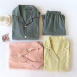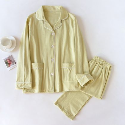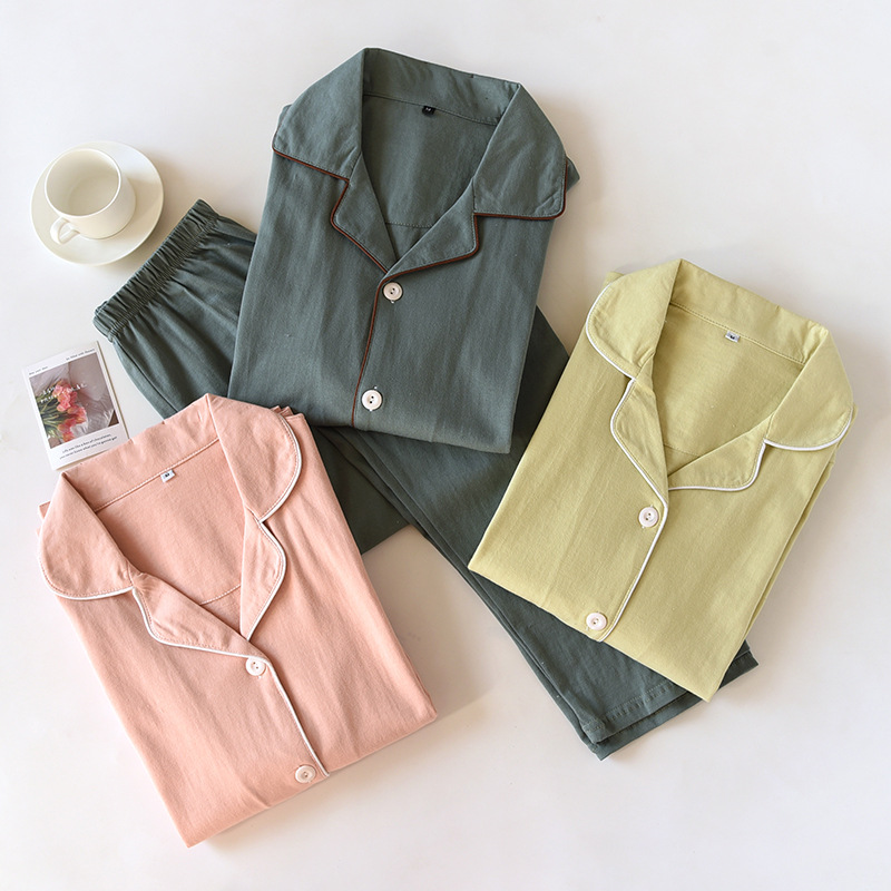 بيجامة بسيطة [فائقة النعومة] للسيدات للربيع والخريف من القطن الخالص ملابس نوم منزلية بأكمام طويلة بدلة رجالية للخريف والشتاء رفيعة