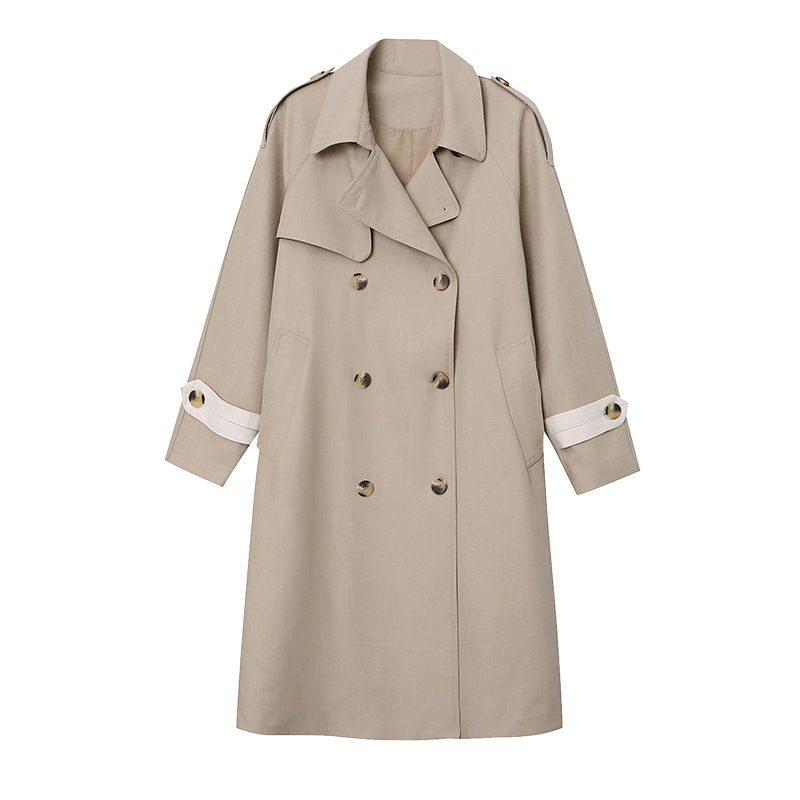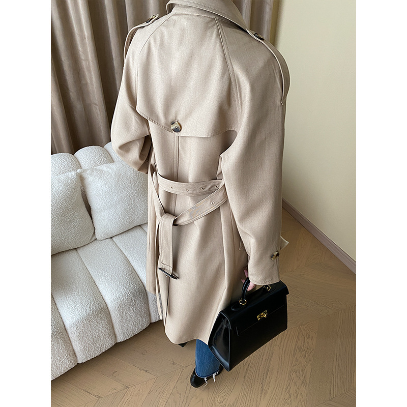 | nameOriginal | Sinan contrast color early autumn British style draping loose temperament belt trench coat mid-length SN3968 |