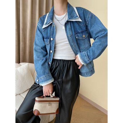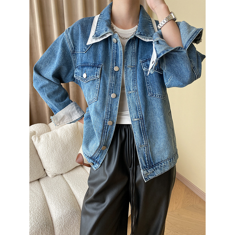 | nameOriginal | Sinan design contrast color double-layer collar early autumn fashionable fake two-piece design loose Denim coat SN3904 |